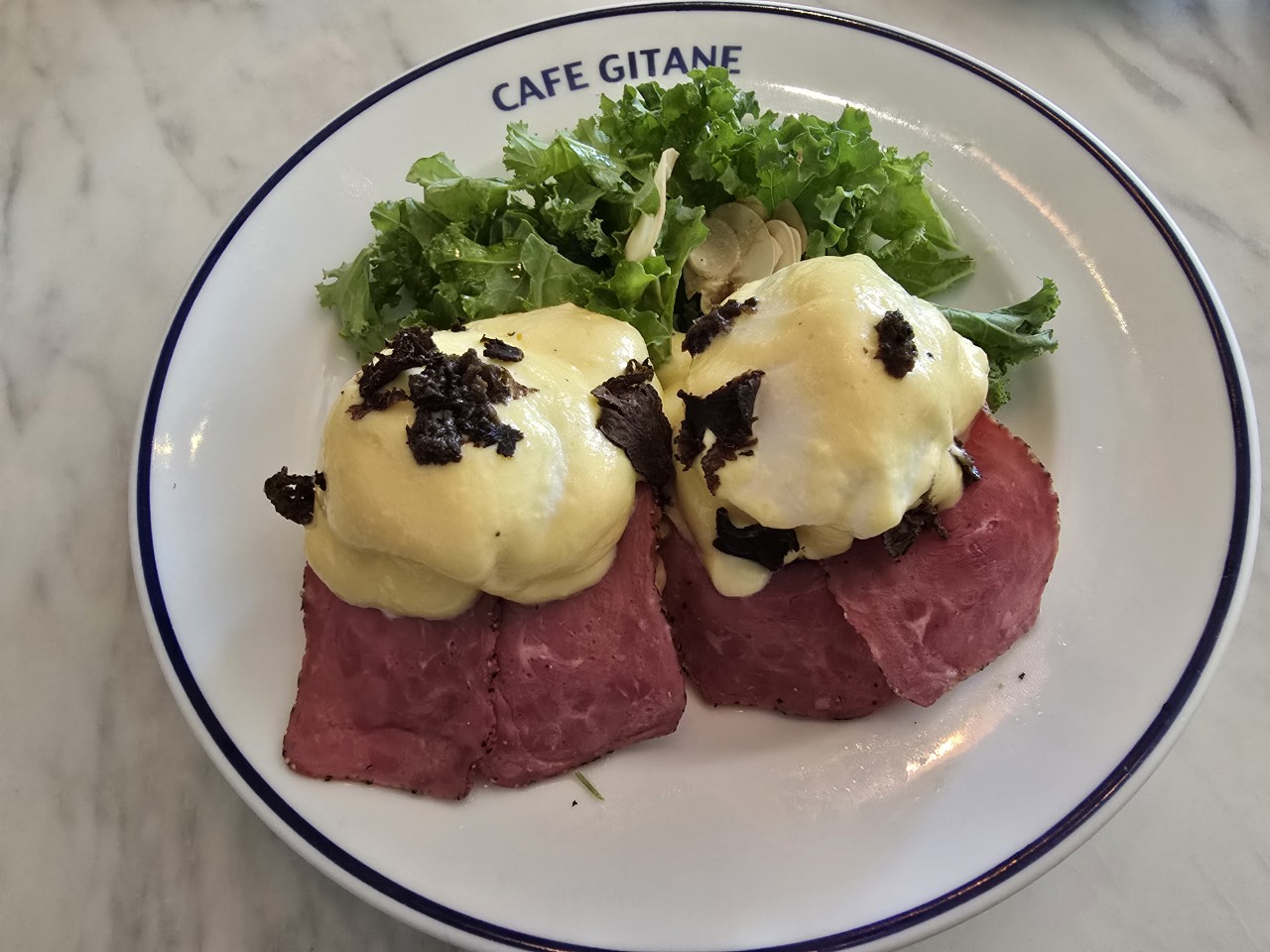 先日CAFE GITANEさんでエッグベネディクトを頂きました。ぷるぷるのポーチドエッグに爽やかなソースとトリュフの芳醇な香りが癖になるひと皿でした。