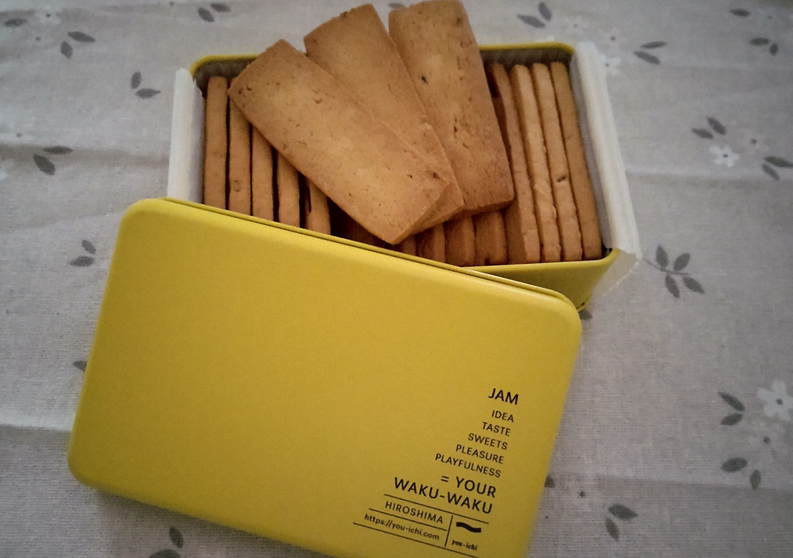 黄色の缶のユーイチの焼菓子で、発酵バター使用に広島レモンマーマレードが練り込んで焼き上げられたレモンサブレを取り寄せてみました😊