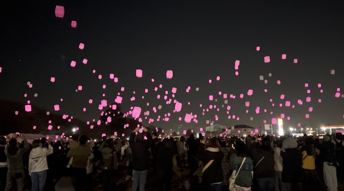 夜空に浮かぶランタンは、とても幻想的でキレイでした。