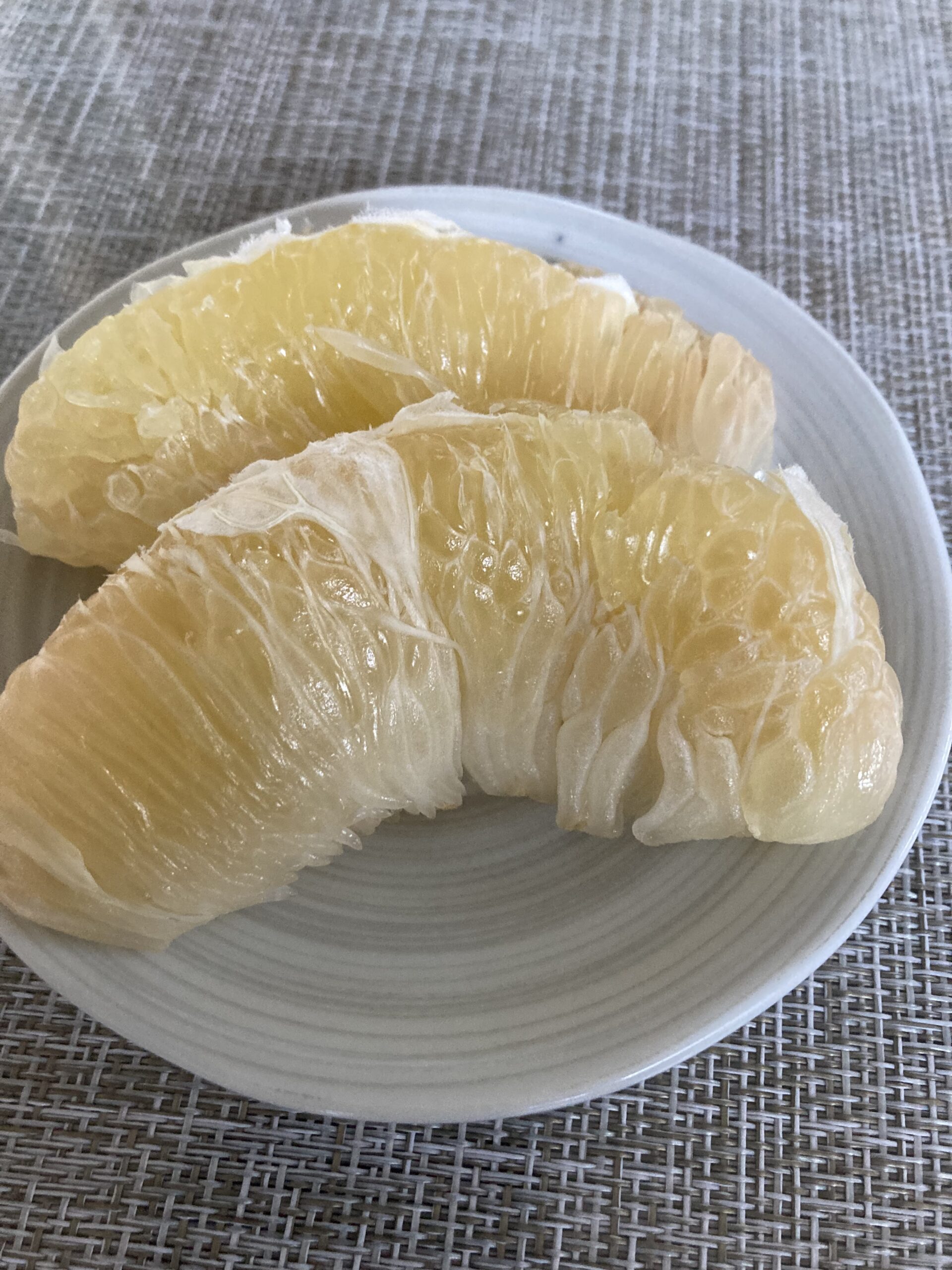 実家が熊本の知り合いから、熊本の果物晩白柚という柑橘類を頂きました。2月が食べ頃だそうでとても大きくて皮が厚く包丁で切ると言う事で、チャレンジしてみましたが、本当に中身を出すまで大変でした。